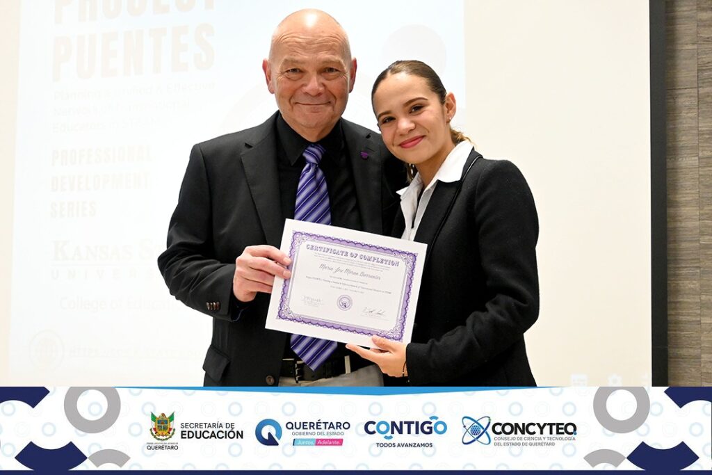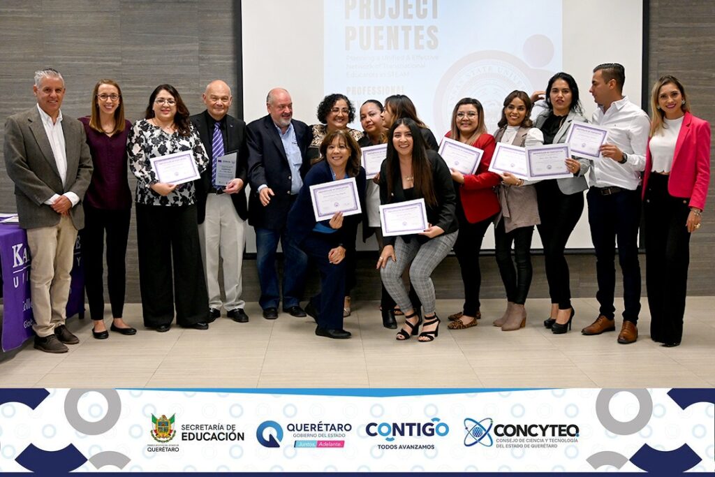 Kansas State University, llevó a cabo la Entrega de Reconocimientos a los futuros profesores, que fueron capacitados en materia STEM del programa “Proyecto Puentes” realizado entre la Universidad de Kansas, CONCYTEQ y la CENEBEQ.